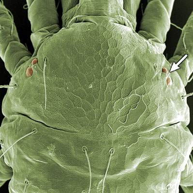 Many mites are blind, but when present, eyes are found on the 'shoulders' region of the bodybody: