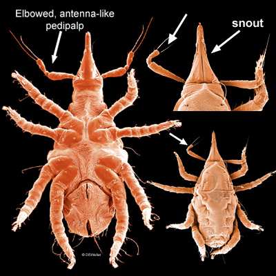 Some acariform mites have secondarily pincer-like palps formed by a hypertrophied distaldistal: