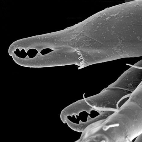 (Greek apotelein = to complete)—the terminus of an appendage; the most distal leg segment, often consisting of an empodium and a pair of claws. The apotele of a leg is usually treated as equivalent to the pretarsus or some part thereof (e.g., the claws and empodium), but the palptarsal apotele in Mesostigmata is a tined structure originating at the base of the palptarsus and thought to be a remnant of the claws. The chelicerae are also an appendage and terminate in the movable digit.) have been lost or reduced to a subdistal, 2-4 toothed structure.