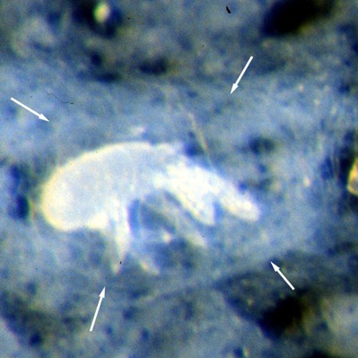 fine threads spun by acariform mites to form a molting chamber (cocoon), protect or attach eggs, or a loosely defined to finely woven web. can be woven into cocoons for moulting (as in this larval Alicorhagia).