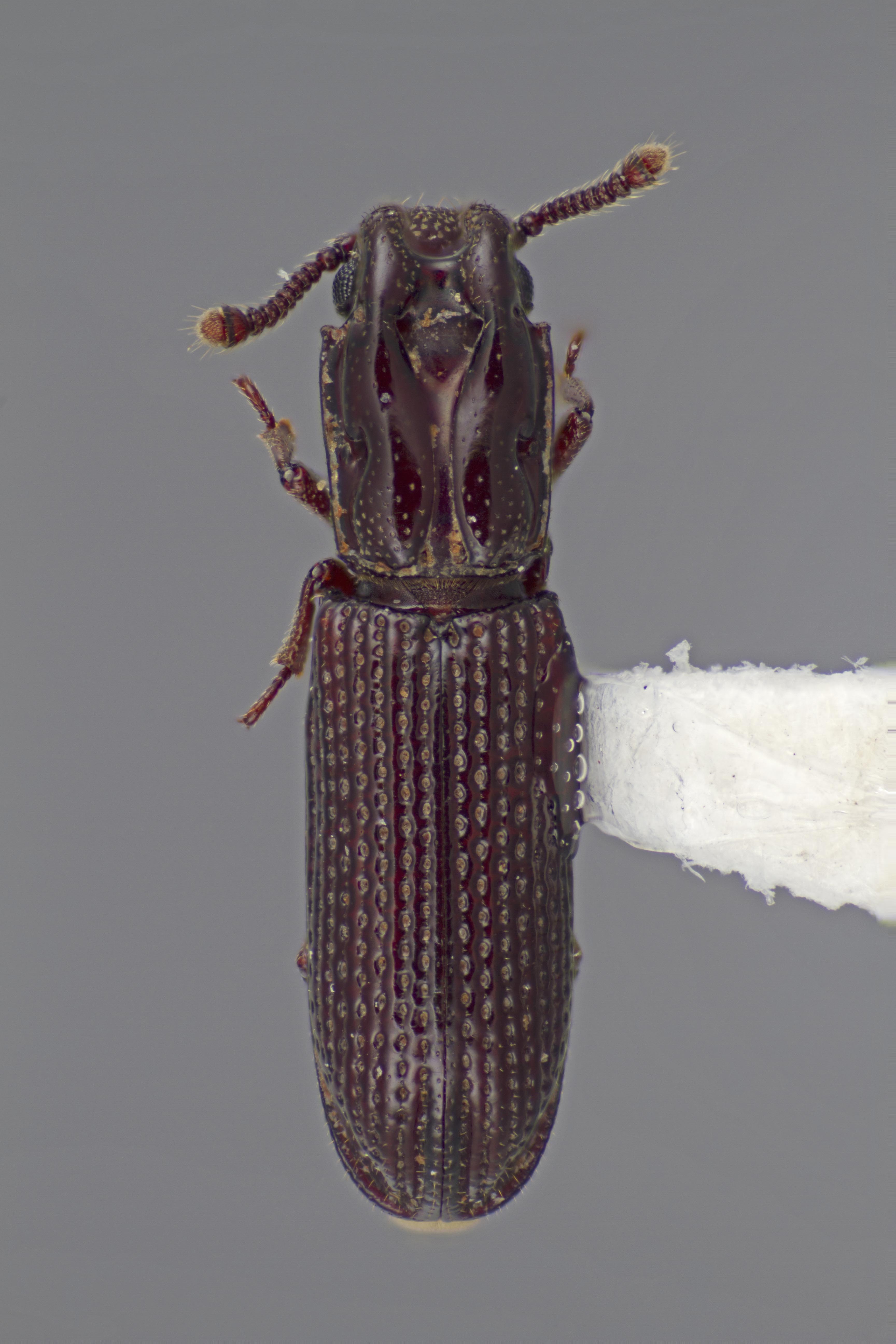 narrowly separated, separation less than metacoxal length. Elytral with 9 rows of evenly spaced, round puncturespuncture: