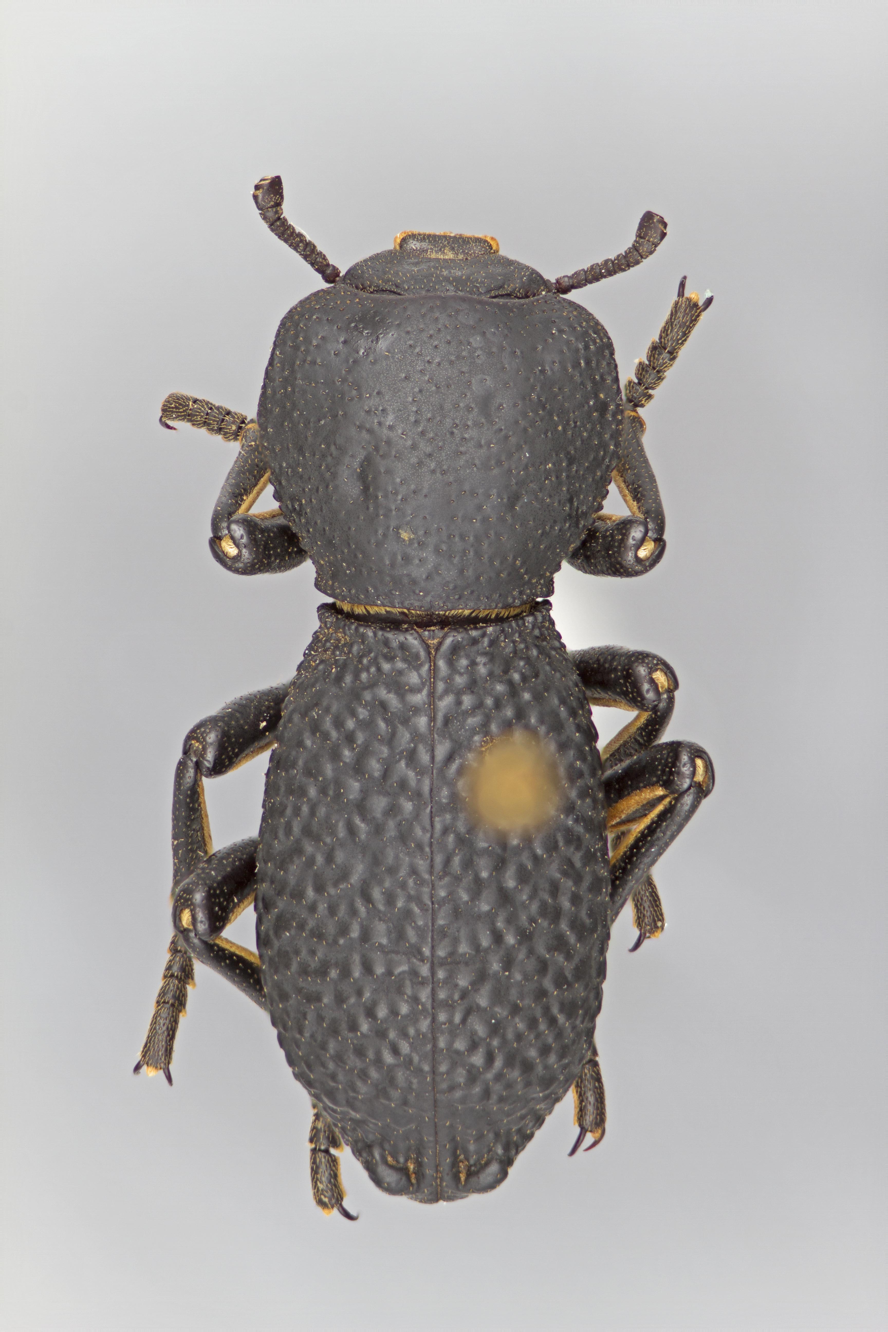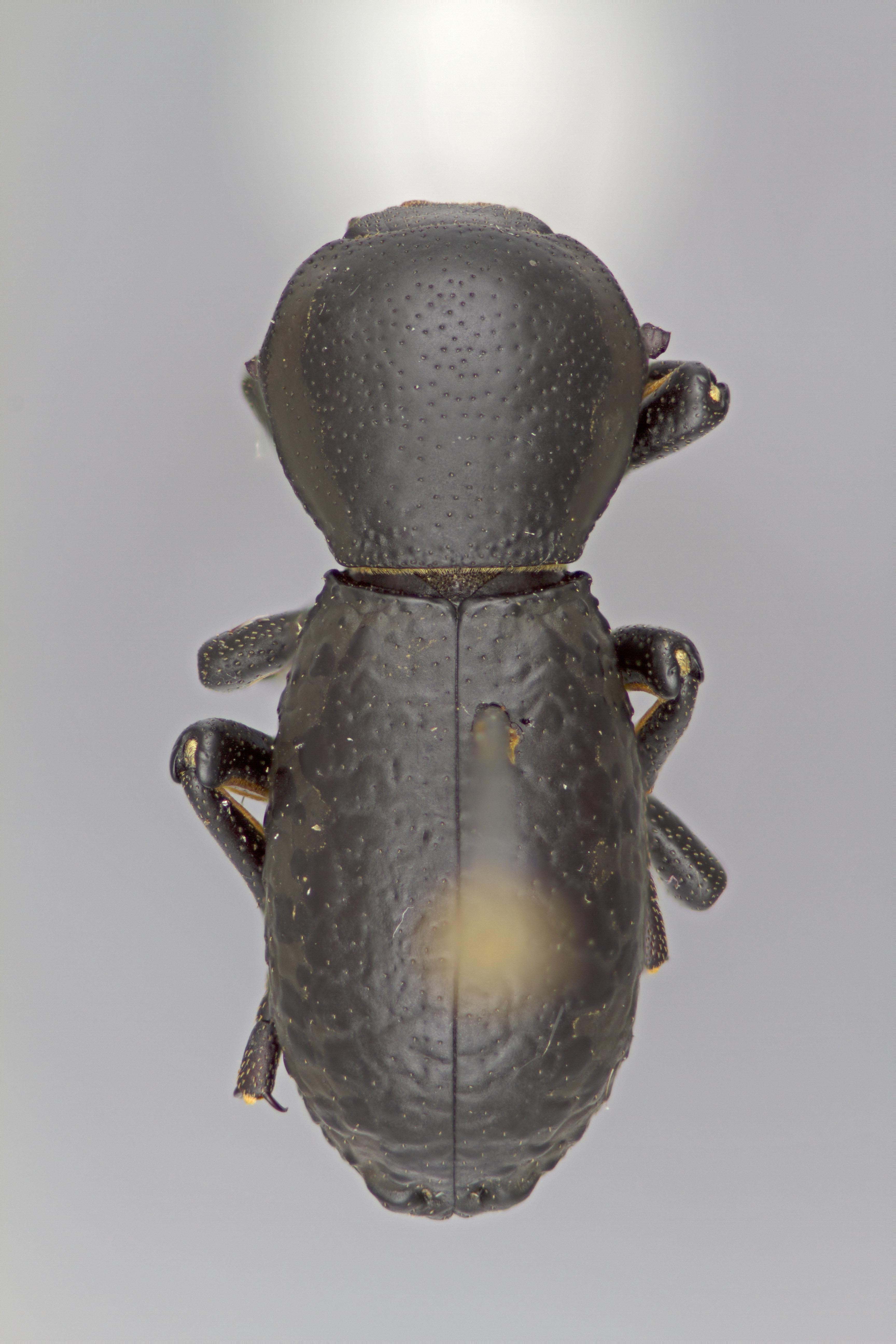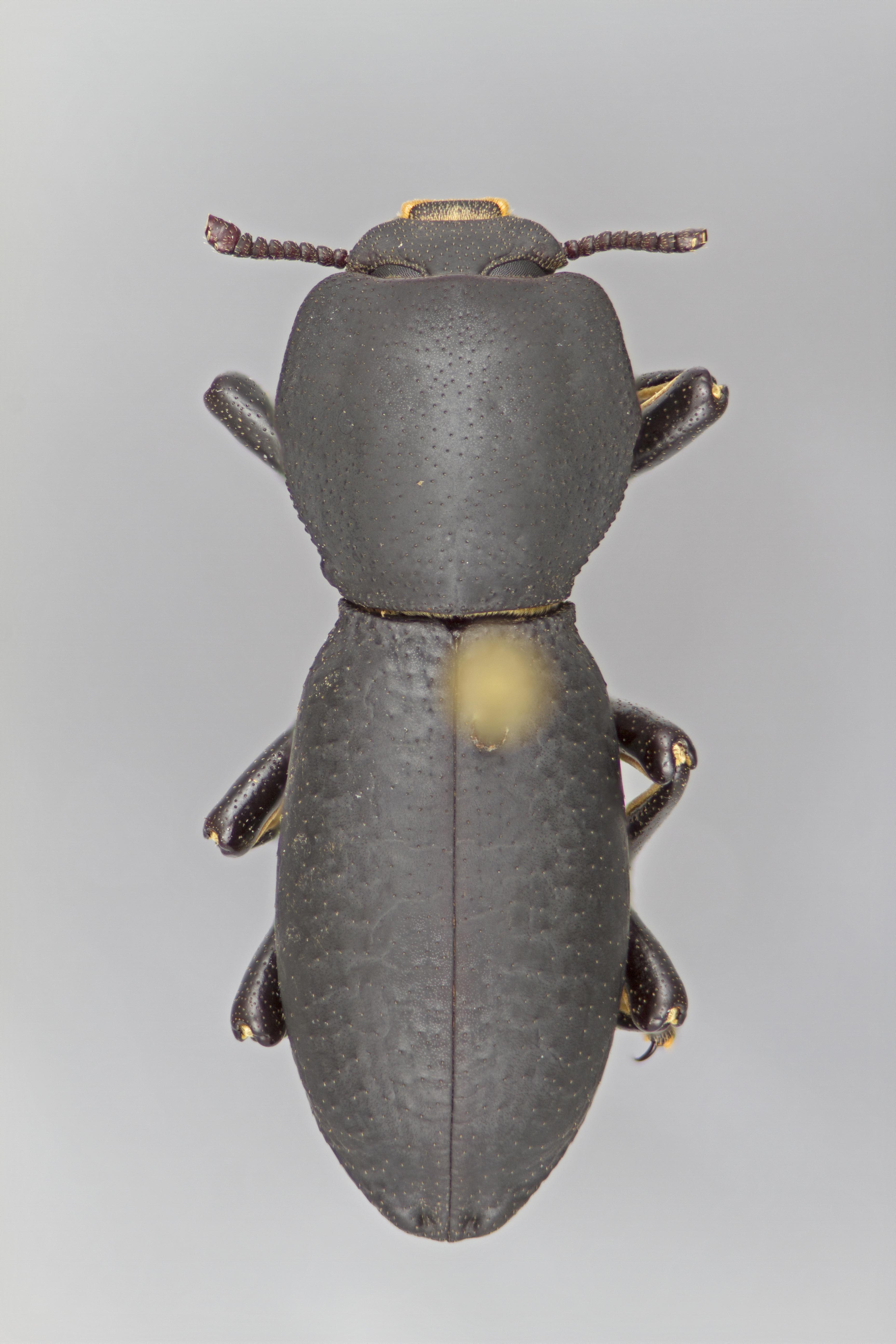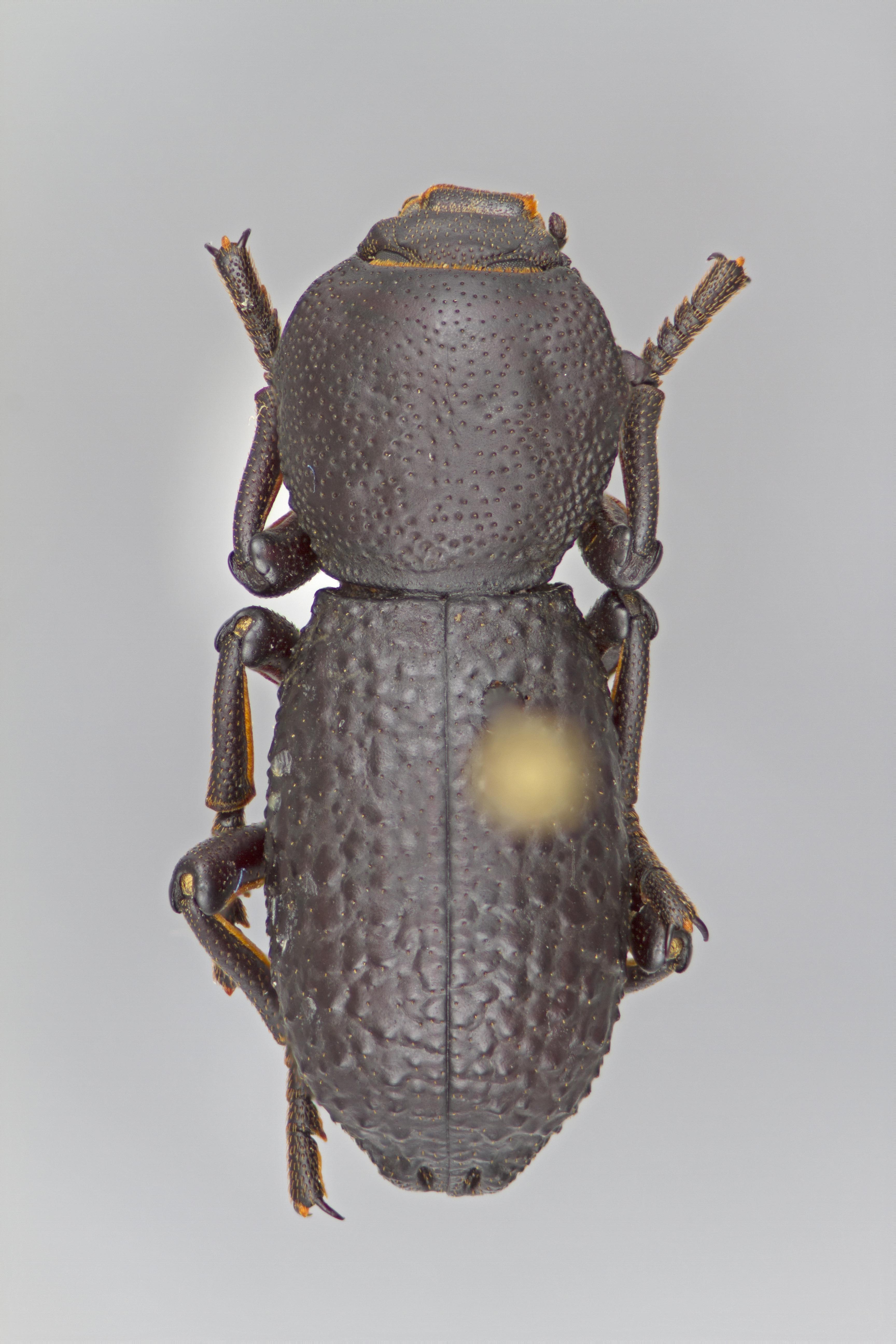 impunctate, smooth to slightly wrinkled, and the solid black dorsum. Zopherus xestus is most similar to Z. gracilis but can immediately be distinguished by the 2 tuberclestubercle: