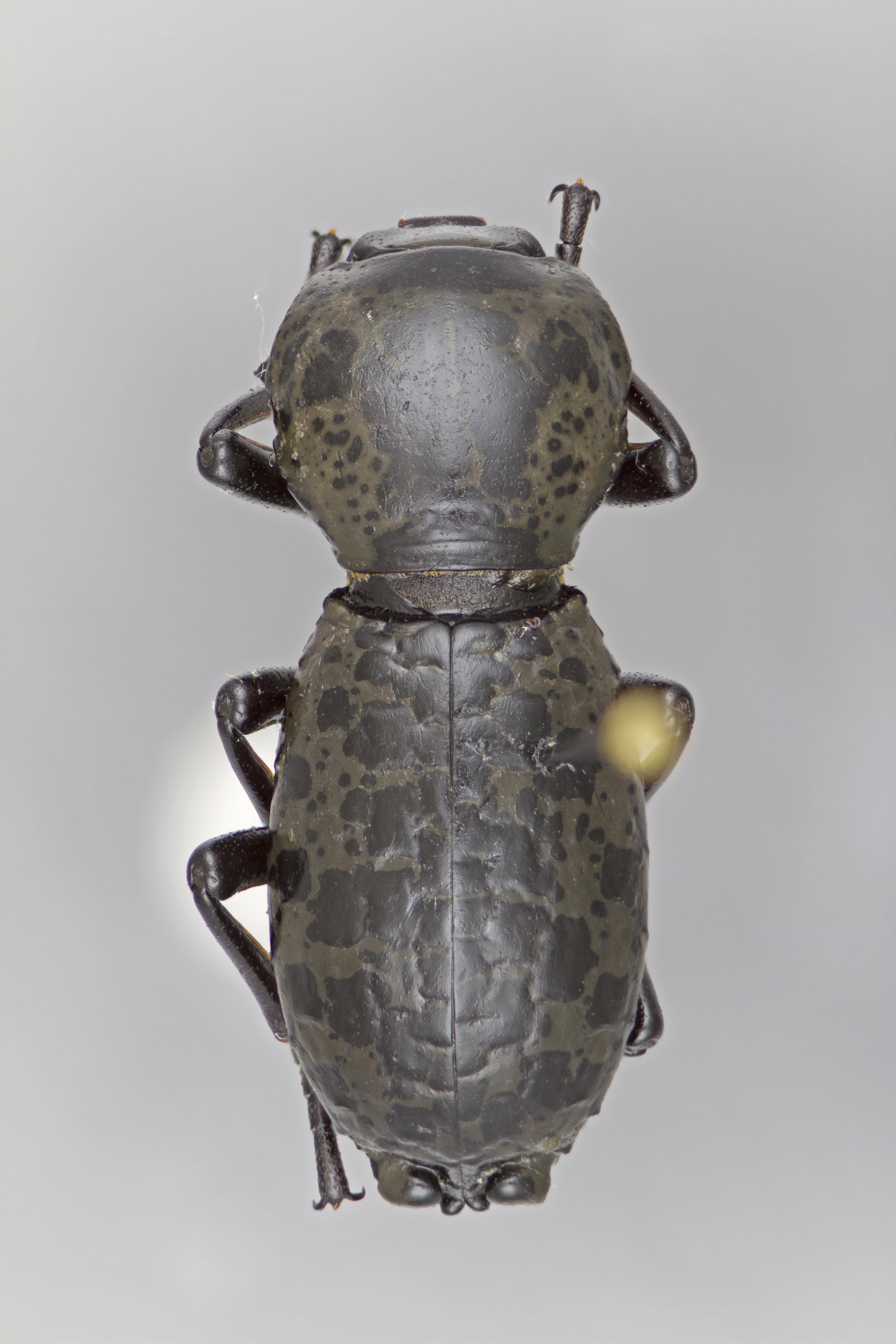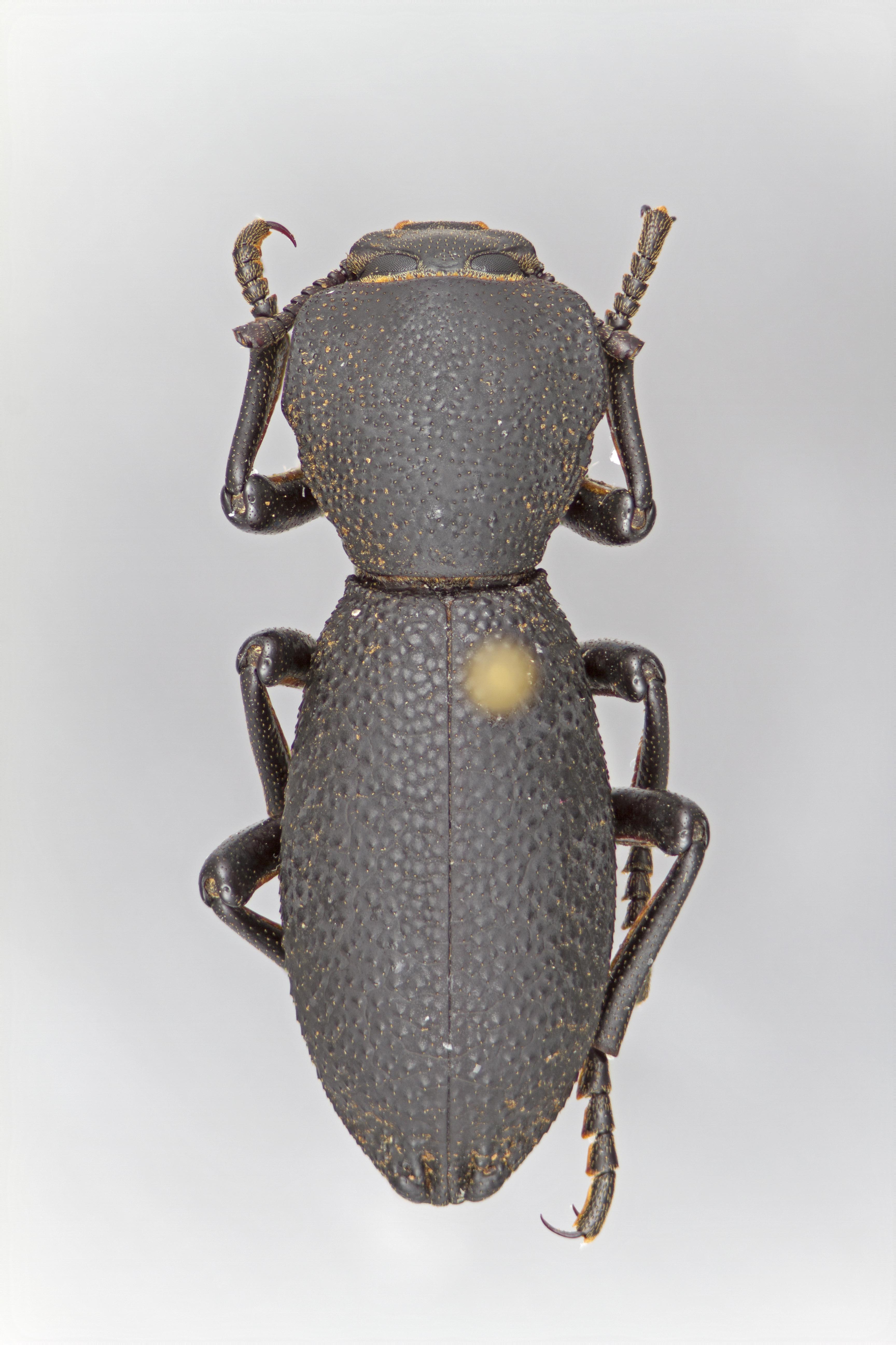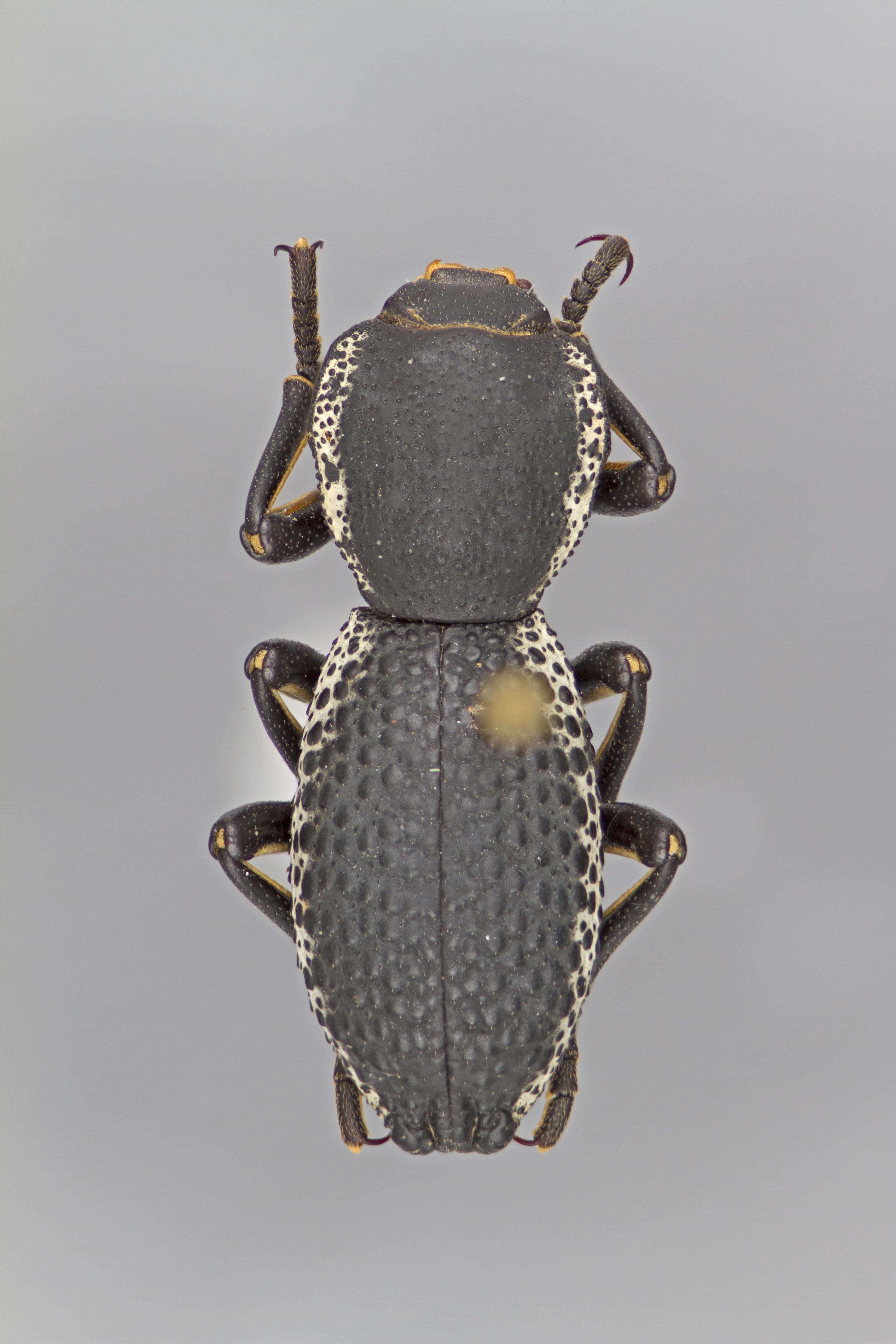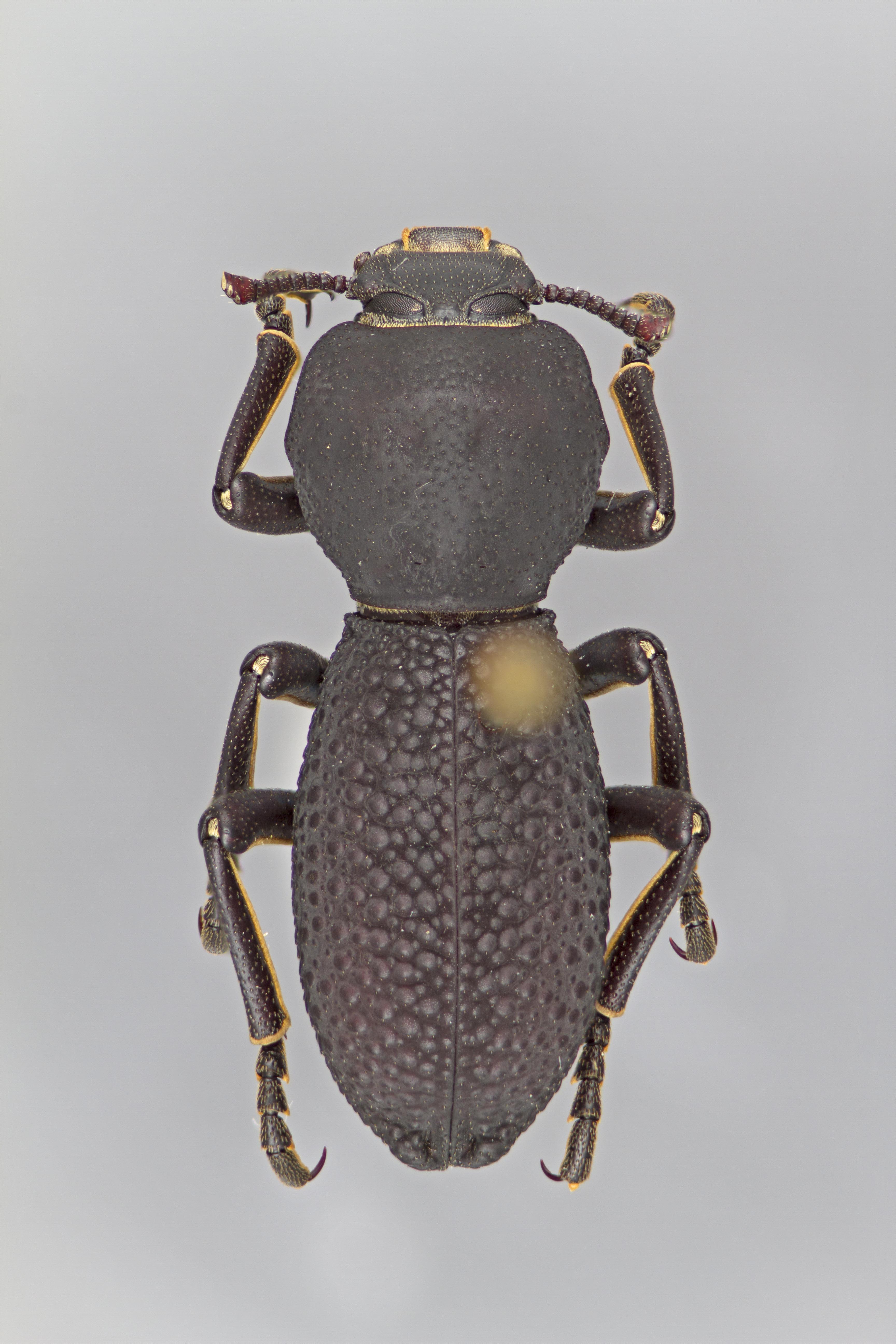 , irregularly tuberculate elytral sculpture (as opposed to vermiculate in other species). Zopherus concolor is most similar to Z. tristis but can be distinguished by the shallower and more sparse pronotal puncturespuncture: