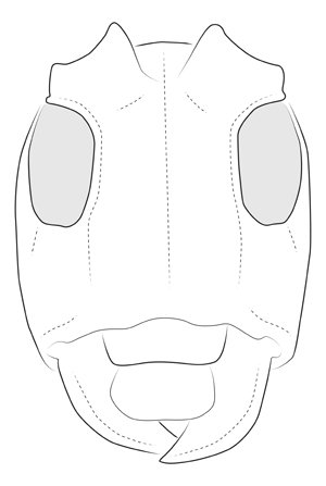 The combination of the following characters will help to distinguish this genus: moderately-sized eyes; conical pronotum, without lateral tubercles; base of elytra with two prominent tubercles at humeri; and elytra attenuate to apex.