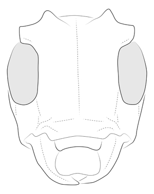 The combination of the following characters will help to distinguish this genus: distinctly large eyes; scape with distinct cicatrix at apex; pronotum distinctly narrower than elytral humeri; base of elytra with two prominent tubercles at humeri; and elytra with distinct, pale transverse lines.