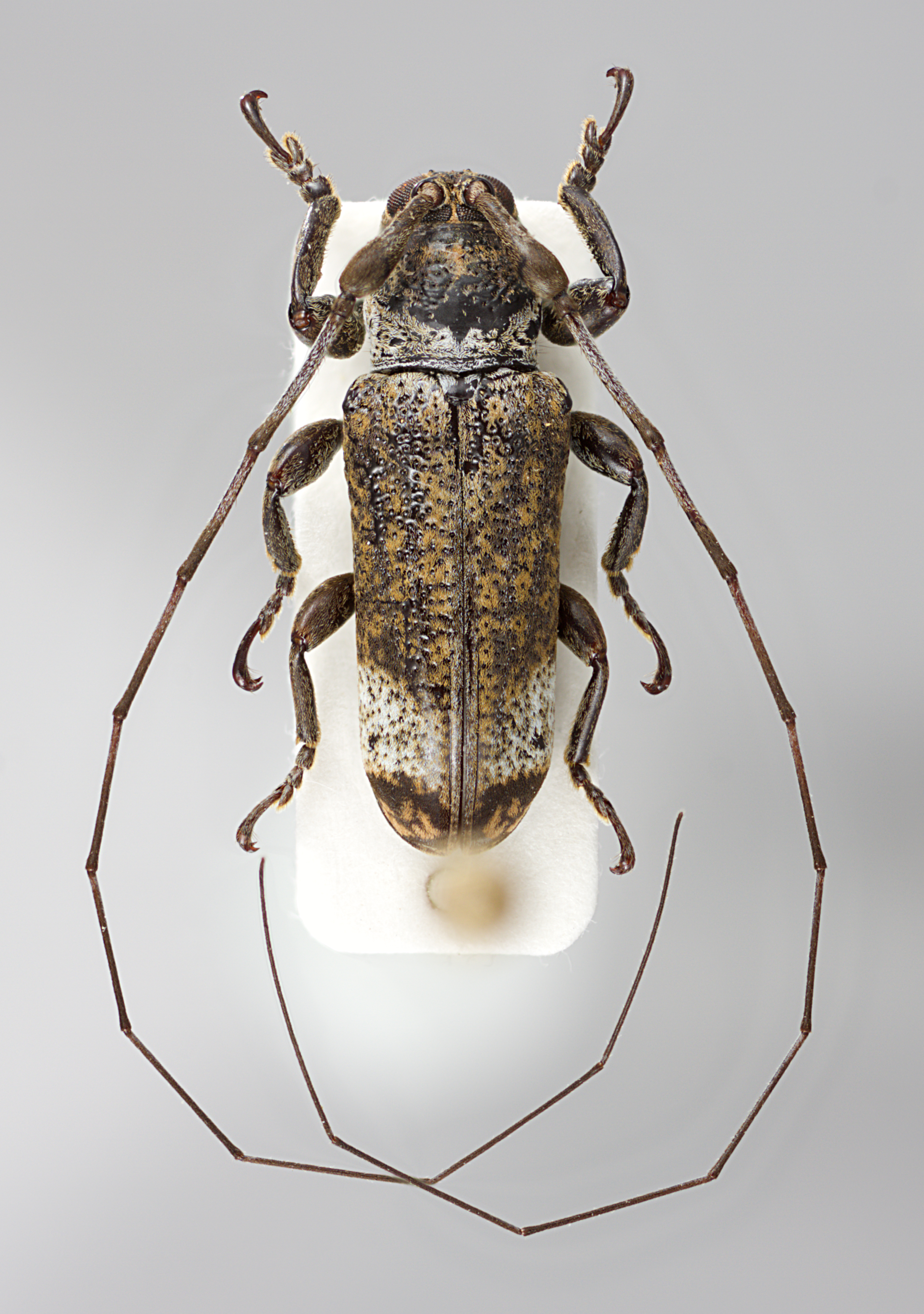 Elongate-oblong, small to moderate-sized, ranging from about 7–13 mm in length. Integument generally dark brown with whitish, ferrugineous, and ochraceous pubescence. Head with frons elongate, narrow, about as wide as width of one lower eye lobe; frons surface roughly sculptured or not. Eyes with lower lobes ovate. Genae elongate, about as tall to distinctly taller than lower eye lobes. Antennal tubercles prominent, narrowly separated, contiguous at base; tubercles not armed at apex. Antennae distinctly longer than overall body length, as much as twice as long; scape clavate, about as long or shorter than antennomere IV; antennomere III sinuate or curved, shorter or longer than scape, longer than antennomere IV; antennomere XI shorter than X (females) or longer than X (males). Pronotum shape variable, from transverse to elongate, cylindrical to conical, wider at base, without lateral tubercles. Elytra with sides roughly parallel; elytral apices individually rounded; apical 1/3 of elytra with distinct maculae; base of elytra without prominent tubercles or with two small tubercles at humeri. Basal 1/3 of elytra with dense punctation, surface coarsely punctate to granulate-punctate. Procoxae simple, without projection. Mesosternal process with apex subtruncate to feebly emarginate. Metafemora moderate in length, about 1/3 as long as elytra.