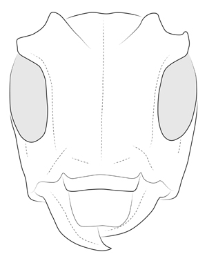 The combination of the following characters will help to distinguish this genus: large eyes; subquadrate frons; gradually expanded scape; pronotum distinctly narrower than elytral humeri, without lateral tubercles; and elytra with sides roughly parallel.