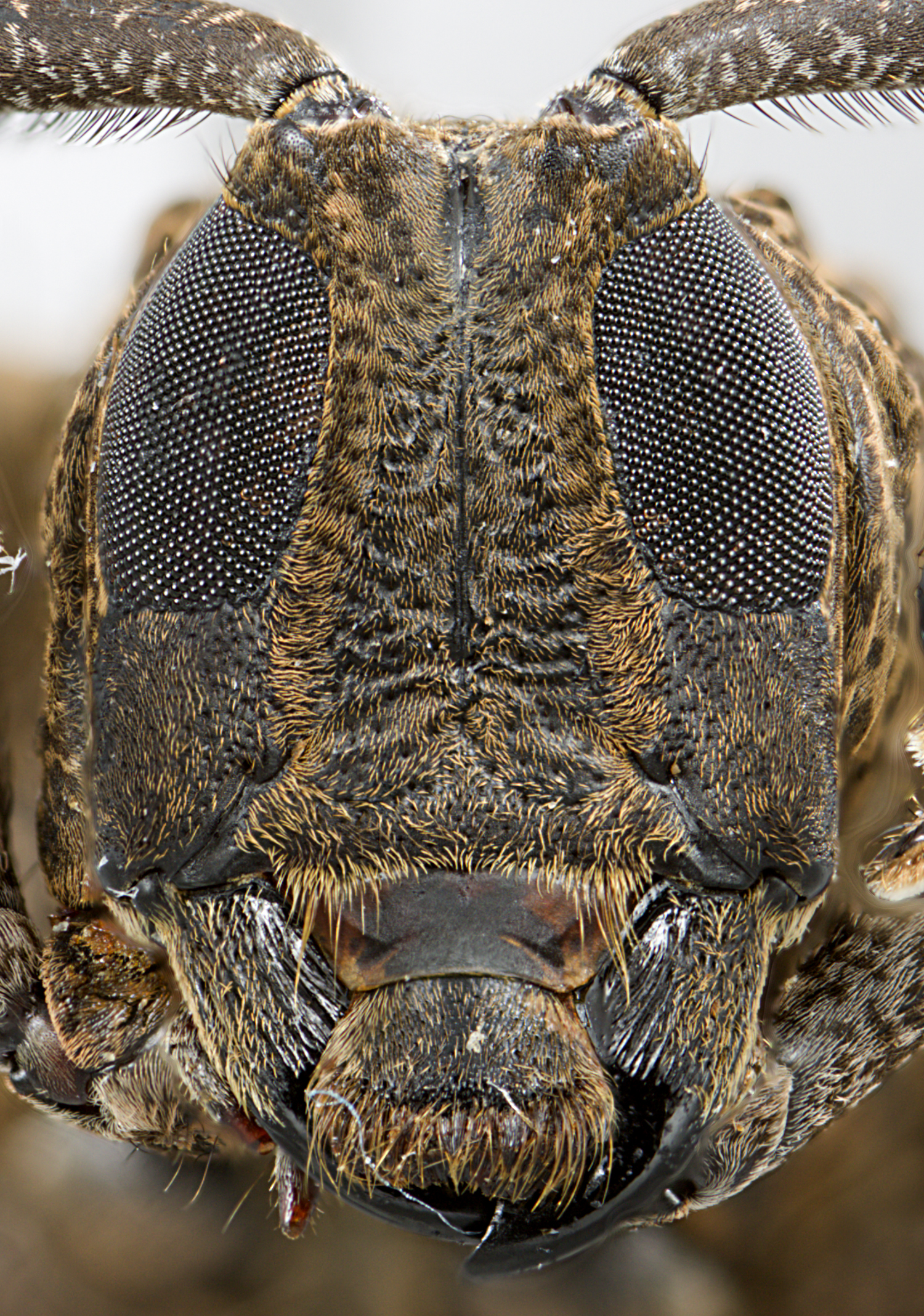 Elongate-ovate, moderate to large-sized, ranging from about 14–28 mm in length. Integument generally black or dark brown with whitish, tan, or brownish pubescence. Head with frons elongate, about as wide as width of one lower eye lobe; frons surface roughly sculptured. Eyes with lower lobes large, oblong. Genae subquadrate to elongate, distinctly shorter than lower eye lobes. Antennal tubercles prominent, narrowly separated, contiguous at base; tubercles not armed at apex or armed with a short, blunt horn. Antennae about as long as overall body length, or as much as twice as long; scape gradually expanded to apex, longer than antennomere IV; antennomere III variable in shape, from nearly straight to curved to sinuate, about as long or longer than scape and longer than antennomere IV. Pronotum transverse, roughly conical, wider at base, with or without lateral tubercles. Elytra with sides slightly attenuate; elytral apices individually rounded; elytra generally uniform in coloration or speckled, or with vague maculae; base of elytra with two prominent tubercles at humeri, often with several additional prominent, shiny tubercles. Basal 1/3 of elytra without punctation or with dense punctation, surface coarsely punctate to granulate-punctate. Procoxae without projection. Mesosternal process with apex feebly to deeply emarginate. Metafemora moderate to short in length, about 1/2–1/3 as long as elytra.