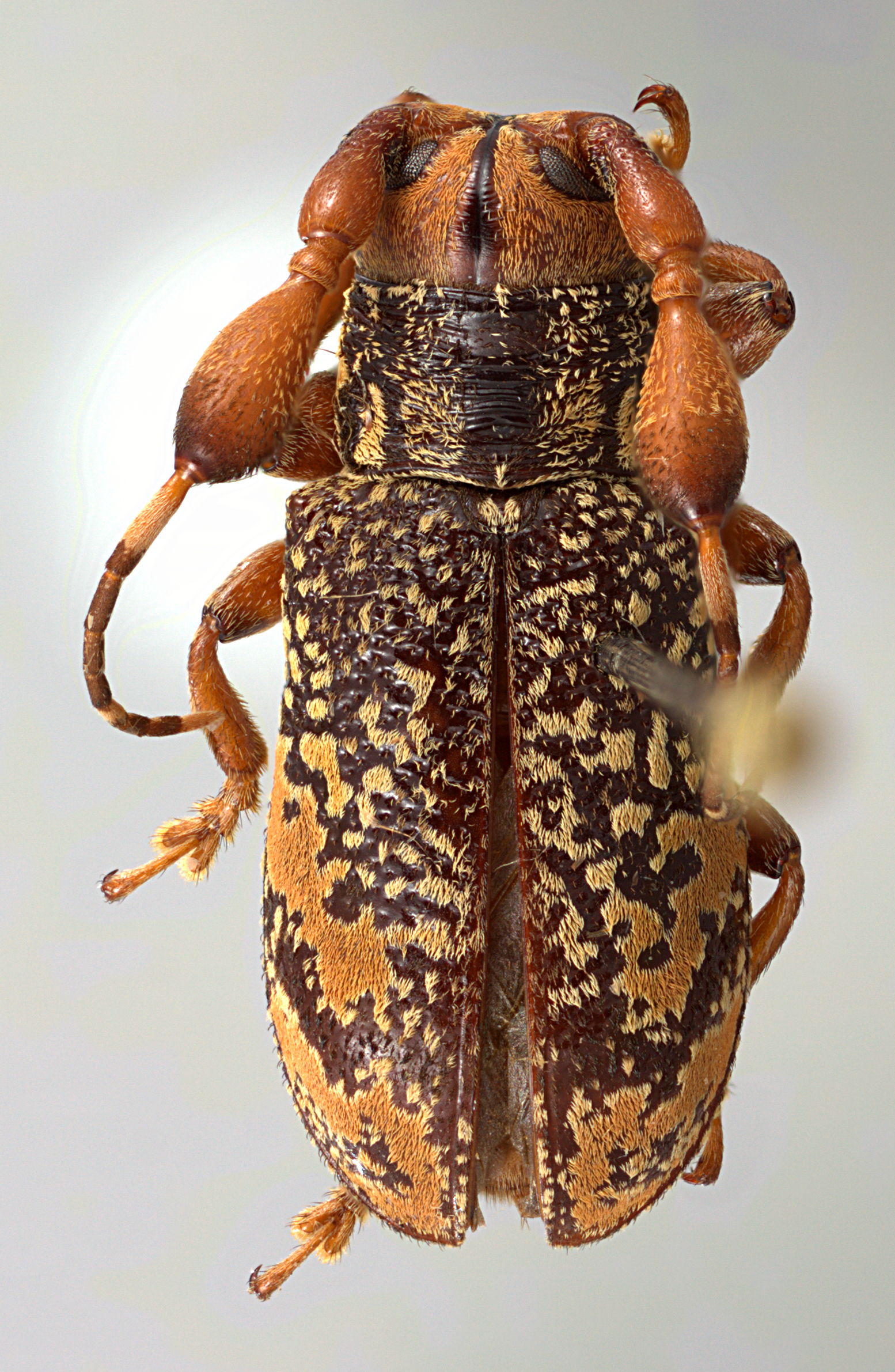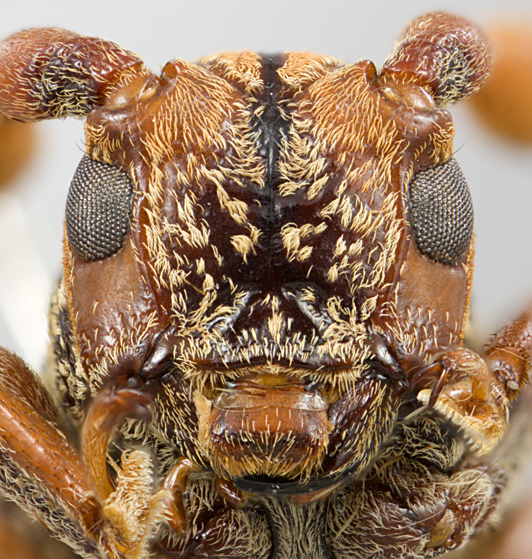 Elongate-ovate, robust, moderate-sized, ranging from about 12–18 mm in length. Integument generally ferrugineous with whitish, ferrugineous, and ochraceous pubescence. Head with frons subquadrate to transverse, about as wide as width of four lower eye lobes. Eyes with lower lobes ovate. Genae elongate, distinctly taller than lower eye lobes. Antennal tubercles prominent, moderately separated; tubercles not armed at apex or armed with a small projection. Antennae distinctly shorter than overall body length, from about 1/2 to 2/3 as long; scape clavate, longer than antennomere IV; antennomere III strongly clavate or elliptical, longer than scape and antennomere IV. Pronotum transverse, roughly cylindrical, without lateral tubercles. Elytra with sides distinctly expanding to apex; elytral apices individually or jointly rounded; elytra with distinct maculae; base of elytra without prominent tubercles or with two prominent tubercles at humeri. Basal 1/3 of elytra with dense punctation, surface granulate-punctate. Procoxae without projection or with an obtuse tubercle. Mesosternal process with apex subtruncate. Metafemora moderate to short in length, about 1/3–1/4 as long as elytra.