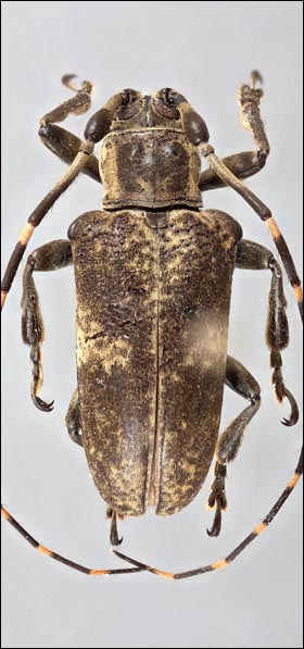 General form elongate-ovate, robust, small to moderate-sized, 11–17 mm in length. Head with frons elongate, about 1.5 times width of lower eye lobe. Eyes with lower lobes large, oblong. Genae distinctly shorter than lower eye lobes. Antennal tubercles prominent, moderately separated. Antennae distinctly longer than body; scape robust, clavate; antennomere III longest. Pronotum subcylindrical, transverse, sides feebly sinuate; disk with three tubercles; disk with one basal transverse sulcus, and a more distinct oblique sulcus laterally which continues down the side. Scutellum transverse, apex rounded. Elytra with lateral margins slightly sinuate, gradually rounded to apices at apical 1/3; humeri prominent. Legs moderate in length; profemora robust. Meso- and metafemora clavate apically; tibiae slightly expanded apically; metafemora about 1/3 as long as elytra.