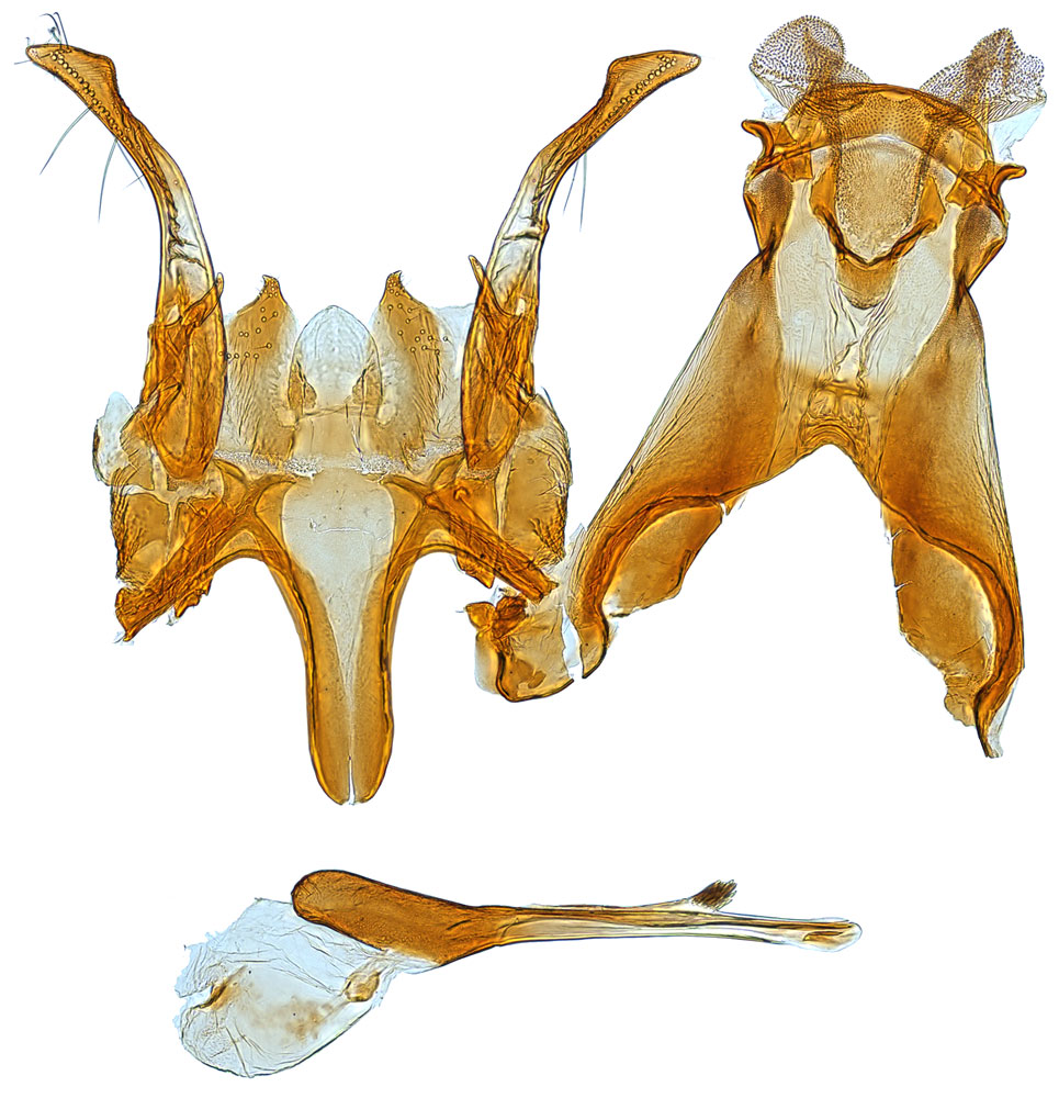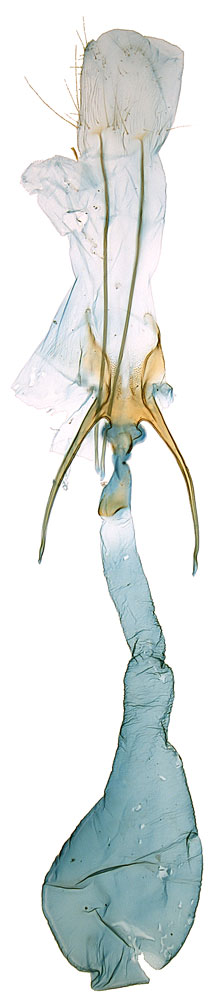 , elongate valvae with triangular-shaped apices, and a phallusPhallus: