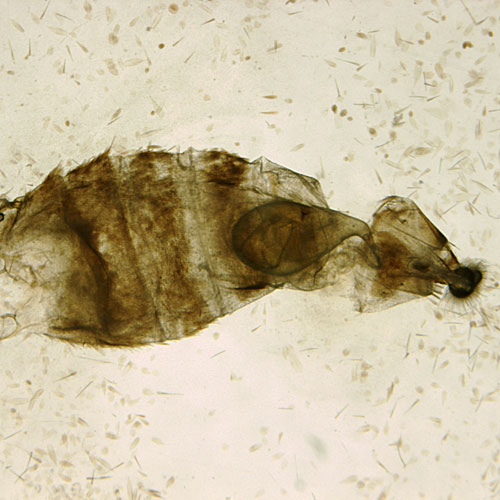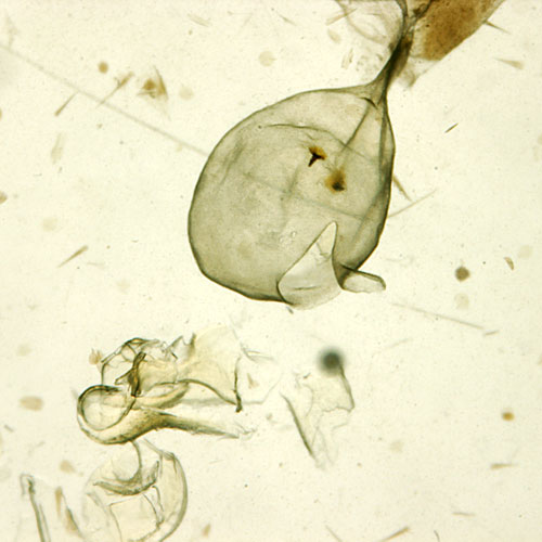 It is often necessary to examine the male or female genitalia when identifying tortricid adults. The following is a guide for dissecting males and females and preparing slides for examination of genitalia under a compound microscope. Instructions for removing specimens from sticky traps are also provided.
