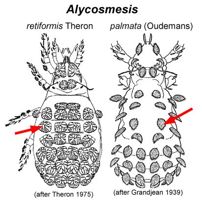 Alycosmesis retiformis Theron, 1975—bluegum litter, South Africa; Alycosmesis granuliformis Theron, 1975—acacia litter, South Africa; Alycosmesis corallium Theron, 1975—bluegum litter, South Africa