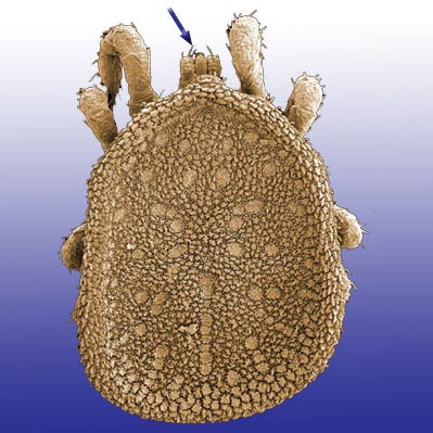 -like mites that feed on the blood of reptiles (Ophionyssus), birds and mammals (Ornithonyssus), but unlike ticks, have a well developed tritosternumtritosternum: