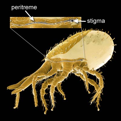 Most of the Mesostigmata encountered in quarantine intercepts are likely to be members of the Monogynapsida, including many species parasitic on birds (e.g., poultry mites), mammals (e.g., rat mites), reptiles (e.g., the snake mite), and bees (e.g, Varroa, Tropilaelaps); predatory mites used in biocontrol; flower mites; stored product predators; and predatory soil mites. Some of the vertebrate parasites (Dermanyssoidea) vector disease.