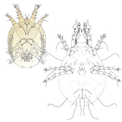 acarids, astigmatids, dust mites, tyroglyphids, cheese mites, grain mites, fur mites, feather mites, mange mites, scab mites, scabies, scaly leg mites, grocer's itch, lemon-scented mites