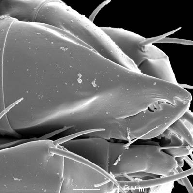 (= palp apotele, palptarsal claw) the most distal segment of the palp; absent in Acariformes, claw-like in Opilioacarida, and a subdistal, tined structure in the Mesostigmata.; subcapitulumsubcapitulum: