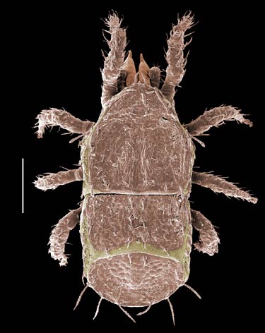 - Brownish, subrectangular mites with podonotalpodonotal: