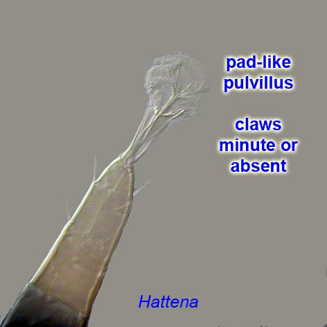 - Pretarsi without distinct claws, only pad-like pulvilluspulvillus: