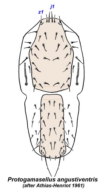 ; corniculicorniculus:Protogamasellus mica group species are particulate feeders, often have fungal hyphae or spores in their guts, and have an enlarged anal opening. Ectoantennoseius Walter, Gamasellodes Athias-Henriot, Asca von Heyden, Antennoseius Berlese, Diseius Lindquist and Evans.