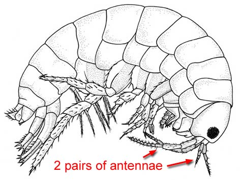 Lateral view of talitrid amphipod (CB, DEW) with two pairs of antennae