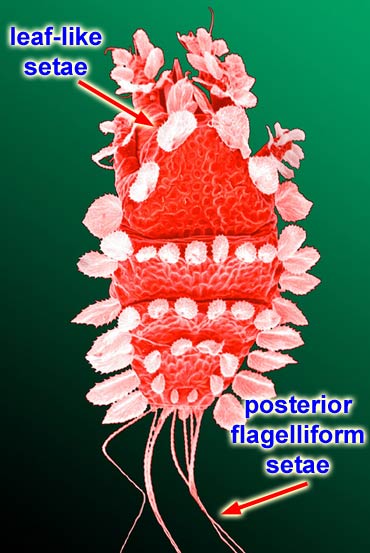 • Adult female with 3 pairs of anal setae (males with 5 pairs of ano-genital setae)