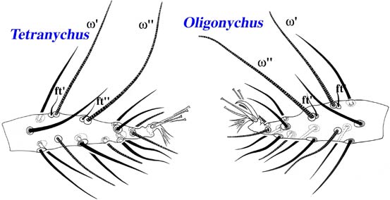 In Eotetranychus Schizotetranychus, Panonychus, and Allonychus the duplex setaeduplex setae: