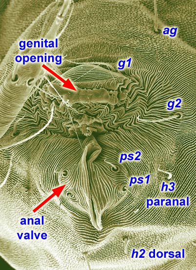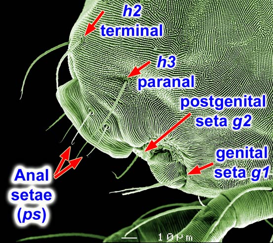 The 'paranal' setae belong to segment H. Spider mites have up to 3 pairs of h-setae; however, only the posteriormost pair (h3) or pairs (h2-3) may be inserted in a ventralventral: