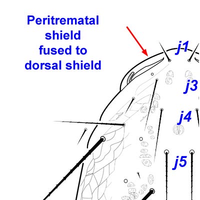 shield. Phytoseiulus longipes, however, does not have this fusion and the peritrematalperitrematal:
