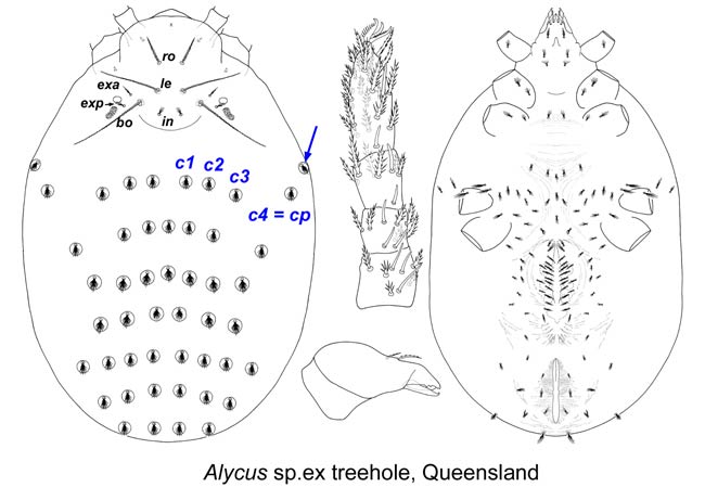 The holotrichous condition for the first row of setae on the acariform hysterosoma is 4 pairs of setae. Hypertrichy in this row usually involves several additional setae, but rarely consists of a single extra pair.