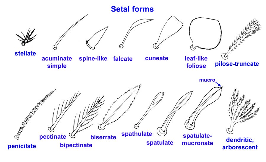 setae may take various forms and are often diagnostic at the species and genus levels.