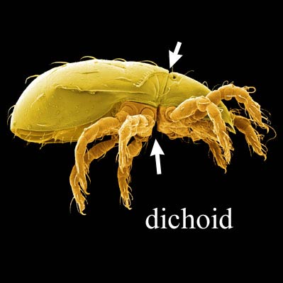 However, some Sarcoptiformes are dichoid; they have a band of flexible cuticle encircling the bodybody: