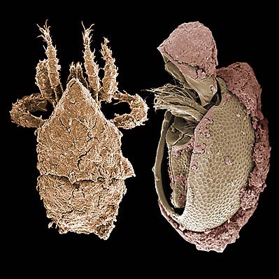 to which bits of soil and detritus may adhere as a kind of additional layer of armor (or perhaps tactile or visual camouflage). A similar, although less dense adherent layer of pollen, fungal spores and the like may be found on species of Fungitarsonemus (Prostigmata, EleutherengonaEleutherengona: