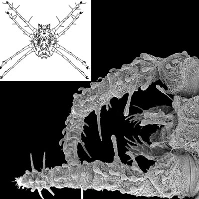 ), and a few sejids (Sejida) have stout setae on legs I that project medially giving the front legs a rake-likerake-like: