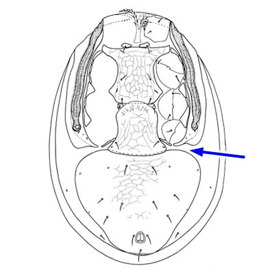 gv2 in the inguinal region between coxae IV and the genital shieldgenital shield: