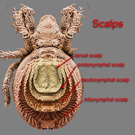 Some groups of oribatid mites retain the notogasteral portion of each molt and carry them stacked on their backs.