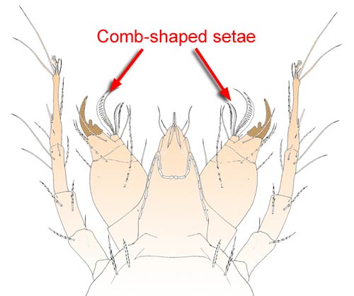 Chelytid mites (Prostigmata, Chelytidae) often have one or more pairs of comb-shaped (pectinatepectinate: