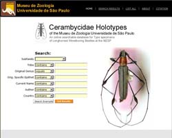 - The MZSP currently has over 900 primary types for Cerambycidae. Authors of these types include Bruch, Dias, Fonseca-Gessner, Galileo, Gounelle, Hovore, Lane, Linsley, Martins, Melzer, Mendes, Monné, Napp, Santos-Silva, Tavakilian, Zajciw, Zikán, and others. The types are predominantly of the Neotropical fauna. We have set up the search page to allow users to find images of types by tribe, by country, by author, by original name, or by current name if different.
