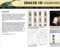 - Oncid ID is designed to aid in the identification of adult 'twig girdlers,' a large group of longhorned beetles which occurs from North America to Argentina. Members of this group are known to attack 57 different woody plant families, including many economically and agriculturally important species such as avocado, cocoa, coffee, guava, grape, peach, and pecan. Within their native range, trees attacked by these beetles are often severely damaged or killed. The potential introduction of exotic twig girdler species into the USA poses a serious risk to our native trees.