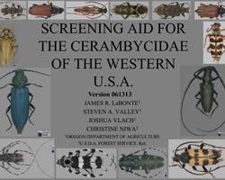 - This screening aid is not a comprehensive treatment of western North American Cerambycidae (roundheaded or longhorned wood borers). It is designed to enable efficient sorting and identification of the most abundant species found in wood boring insect trap samples from surveys conducted by the ODA and the USDA FS in the Pacific Northwest and the West over the past ten years. Several exotic pest species are also included. *This aid will be most reliable in the conifer forest regions west of the Rocky Mountains. It may not function well with species found in the desert West and east of the Rockies.