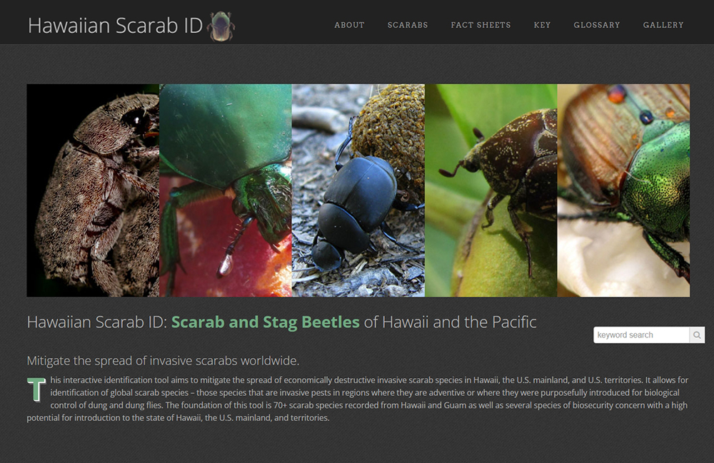 - Hawaiian Scarab ID includes over 70 native, established, and possibly invasive scarab species from the islands of the Pacific, particularly Hawaii and Guam. Included are a key, fact sheets, behavioral videos, an anatomy guide, a sortable image gallery, and a glossary, as well as DNA barcode data to help identify larvae.