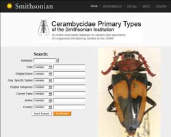 - The Smithsonian Institution currently has over 2,100 primary types for Cerambycoidea (families Cerambycidae, Disteniidae, Oxypeltidae, and Vesperidae). Authors of these types include Aurivillius, Breuning, Casey, Chemsak, Dillon & Dillon, Fisher, Galileo, Gressitt, Kriesche, Lane, Linell, Lingafelter, Linsley, Martins, Melzer, Micheli, Monné, Nearns, Schaeffer, Schwarzer, Tippmann, and many others. The types represent fauna from over 30 countries from Afghanistan to Zaire, literally from A to Z, although emphasis is on the United States, the Caribbean, and Central and South America. We have set up the search page to allow users to find images of types by tribe, by country, by author, by original name, or by current name if different.
