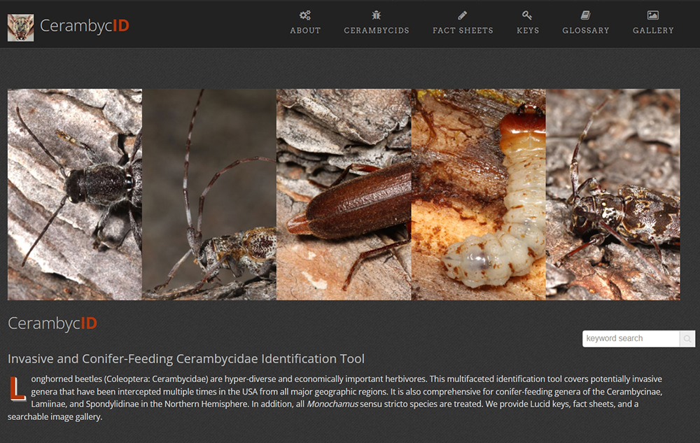 - CerambycID offers identification support for both conifer-feeding and commonly-intercepted longhorned beetle genera, as well as 19 Monochamus species. Also included are fact sheets, three keys, a filterable image gallery, a glossary, anatomy diagrams, and other relevant background information.