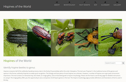 - This tool contains an interactive key, fact sheets, an image gallery, and an illustrated guide to hispine morphology. It includes 195 genera from the former subfamily Hispinae (family Chrysomelidae), now included within the subfamily Cassidinae.