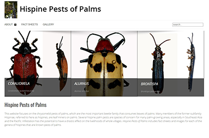 - Part of the Palm Resource collection, this website includes fact sheets and images for the 23 palm pest genera of the Family Chrysomelidae, which all fall in the former subfamily Hispinae.