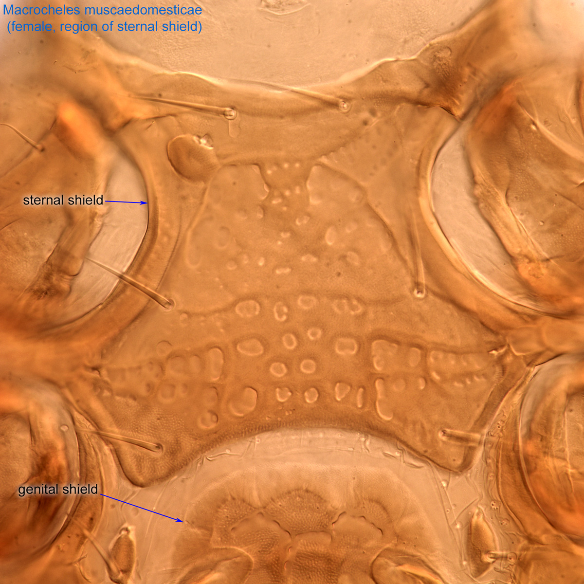 . In Macrocheles, dorsal shield smooth, punctate, reticulate, or areolate; sternal shieldsternal shield: