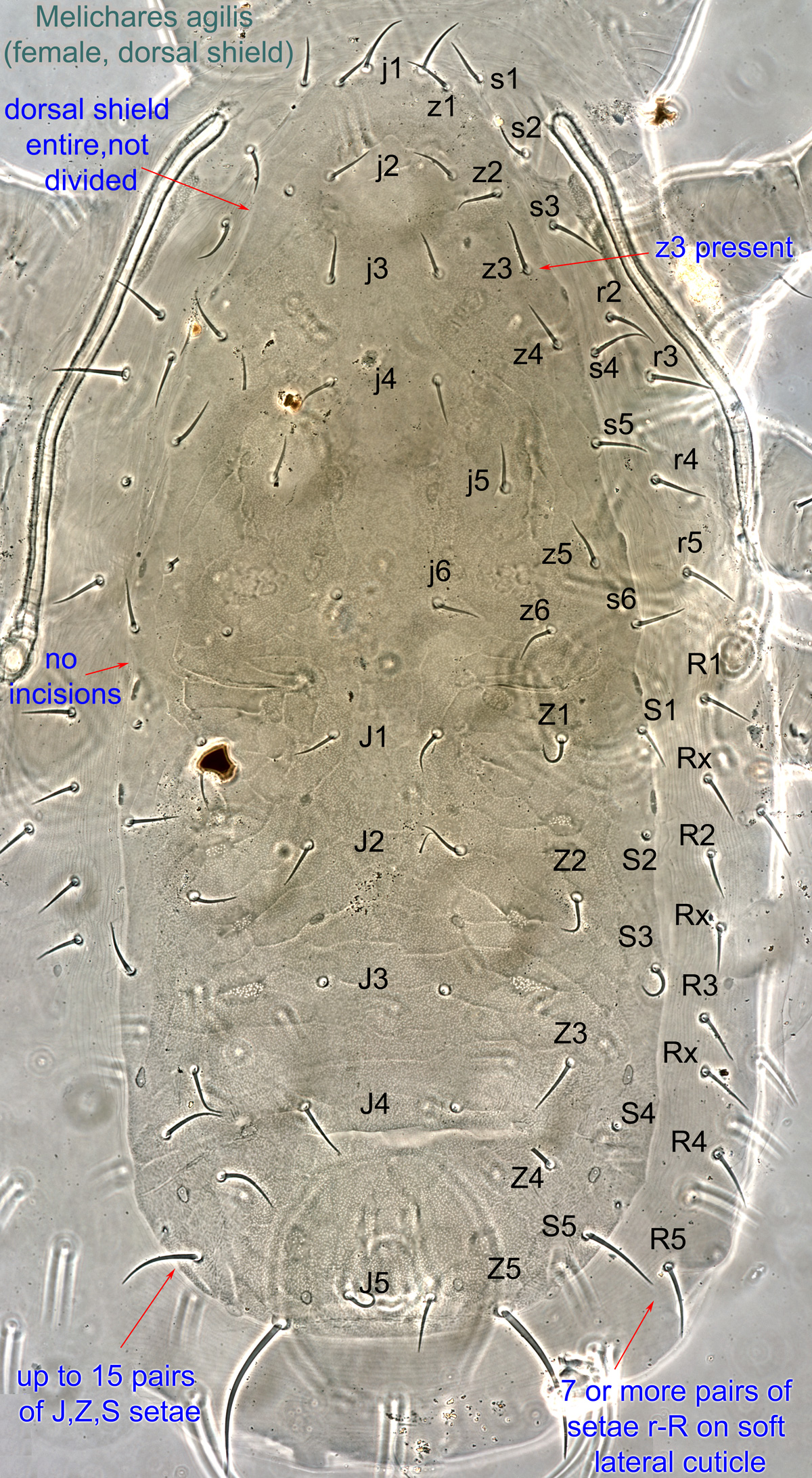 region of dorsal shield with 14–15 pairs of setae (J, S, Z) (Fig. 3). Idiosomaidiosoma: