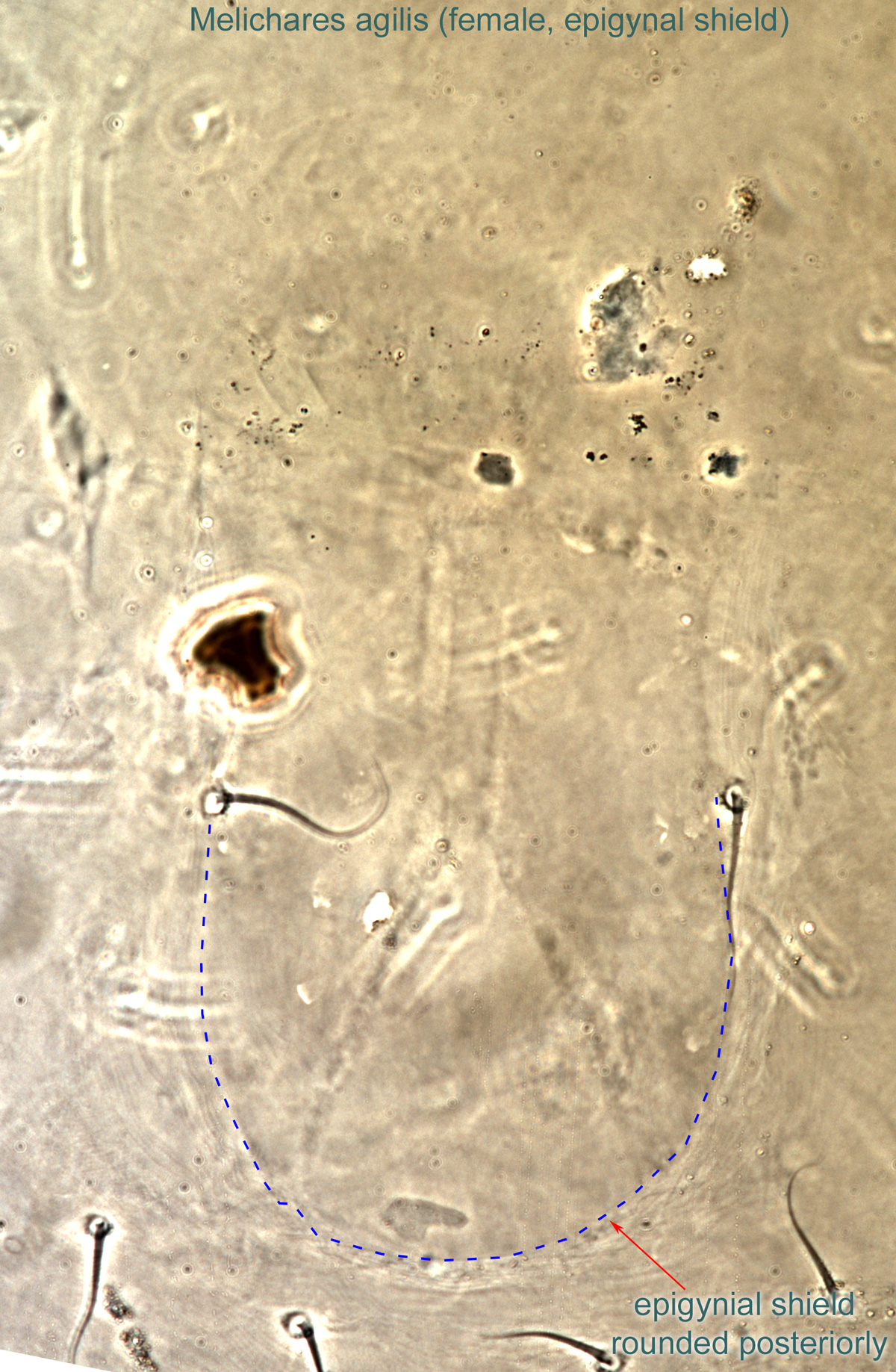 This genus includes two species, but only Melichares agilis has been found in association with bees. This species can be identified using Evans, 1958Evans, 1958: