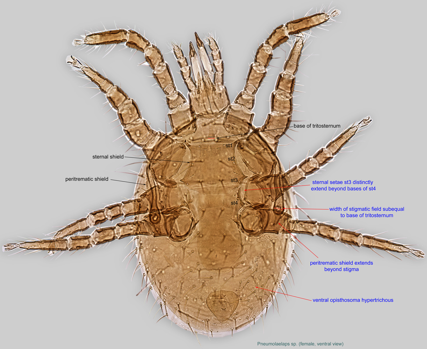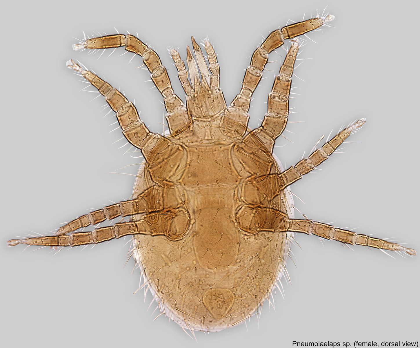 Superorder Parasitiformes » Order Mesostigmata » Suborder Monogynaspida » Hyporder Dermanyssiae » Family Laelapidae » Genus Pneumolaelaps