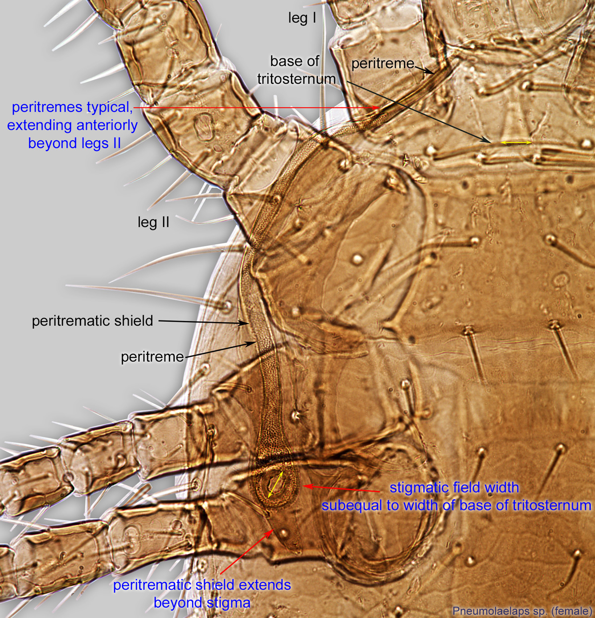 Female: Stigmata enlarged: width of stigmatic field subequal to base of tritosternumtritosternum:
